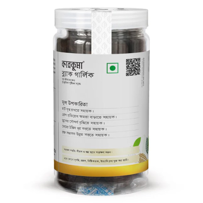 কারকুমা ব্ল্যাক গার্লিক শরীরের জন্য অত্যন্ত উপকারী একটি প্রাকৃতিক খাদ্য। এটি সাধারণ রসুনের মতো হলেও বিশেষ প্রক্রিয়ায় তৈরি হওয়ায় এর পুষ্টিগুণ ও উপকারিতা অনেক বেশি। এটি শরীরের রোগ প্রতিরোধ ক্ষমতা বাড়ায় এবং নানা ধরণের অসুস্থতা থেকে রক্ষা করে। ব্ল্যাক গার্লিকে প্রচুর অ্যান্টিঅক্সিডেন্ট থাকে যা কোষের ক্ষতি রোধ করে এবং বার্ধক্য প্রতিরোধে সহায়তা করে। এটি হার্টের স্বাস্থ্যের জন্য ভালো, রক্তচাপ ও কোলেস্টেরল নিয়ন্ত্রণে সাহায্য করে। হজম শক্তি বাড়ায় এবং লিভারকে সুস্থ রাখে। ব্ল্যাক গার্লিক নিয়মিত খেলে শক্তি বৃদ্ধি পায় এবং শরীরের ক্লান্তি দূর হয়। এটি ত্বকের সৌন্দর্য বজায় রাখতে সাহায্য করে এবং চুলের স্বাস্থ্য উন্নত করে। ব্ল্যাক গার্লিক শরীরের টক্সিন দূর করে ও রোগপ্রতিরোধ ক্ষমতা শক্তিশালী করে তোলে।