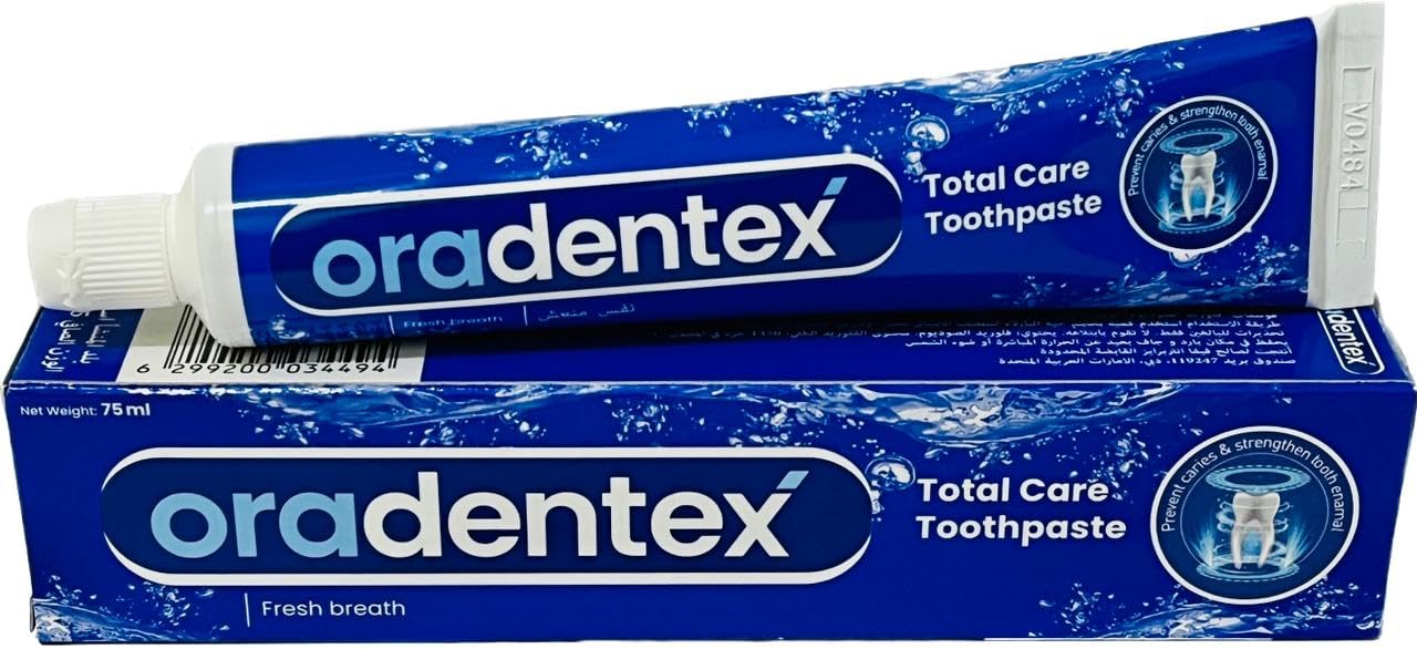 ওরাডেন্টেক্স টোটাল কেয়ার টুথপেস্ট দাঁত মাড়ি নিঃশ্বাস ও সামগ্রিক ওরাল হাইজিনের সম্পূর্ণ সমাধান এটি ব্যাকটেরিয়া কমায় মাড়ির রক্তপাত রোধ করে ও মুখকে দীর্ঘ সময় সতেজ রাখে প্রতিদিন ব্যবহারে দাঁত থাকে শক্ত মাড়ি থাকে সুস্থ এবং শ্বাস থাকে পরিষ্কার